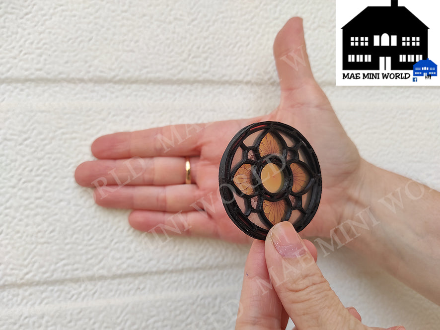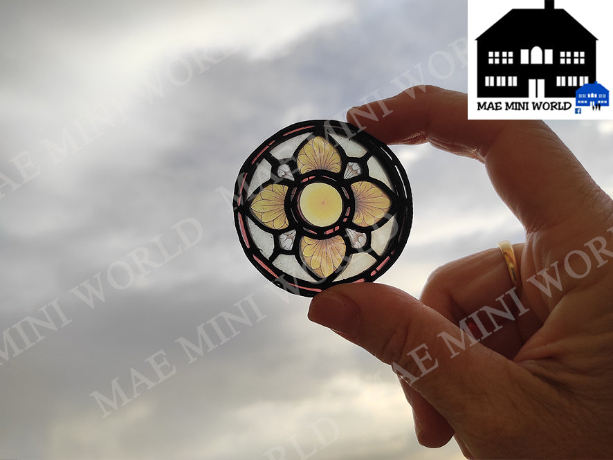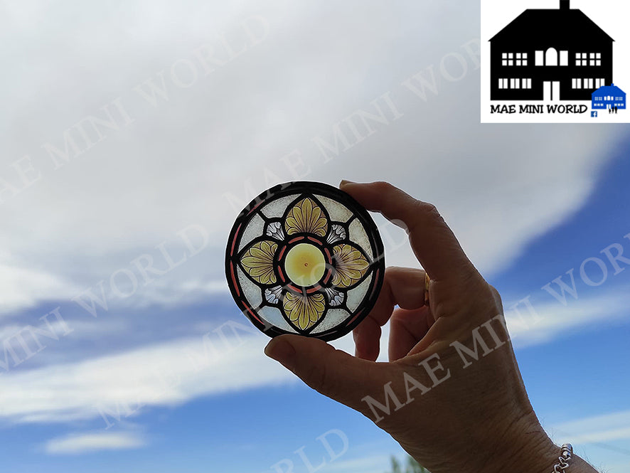 Miniature ROUND Stained Glass window VENEZIA. Mini Stained Glass Dollhouse. Custom size. dioramas, Scenes, gifts, cakes, desk decoration.