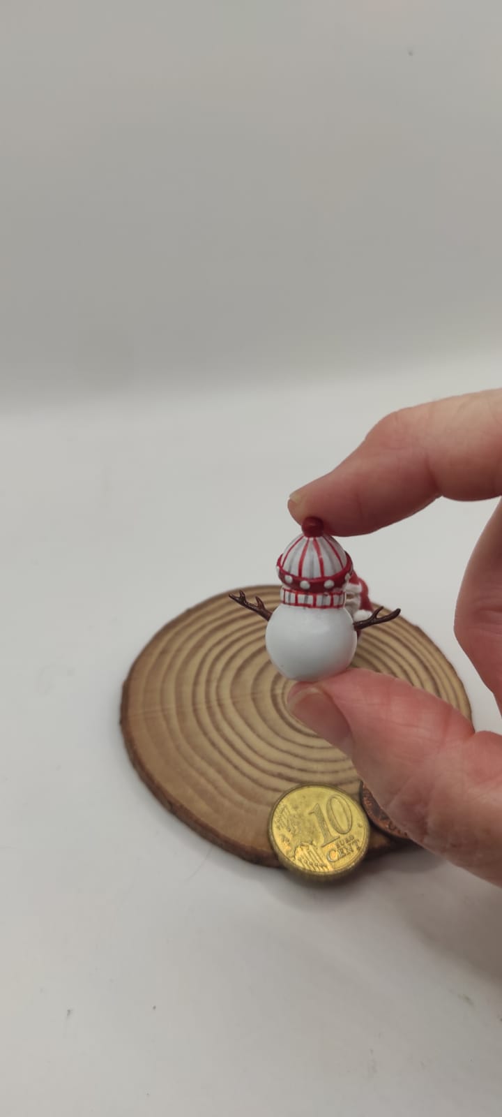☃️❄️🏔 Handmade SNOWMAN Miniature. A cheerful little Snowman with red details, perfect for Christmas dioramas, holiday displays, or as a unique collectible gift.