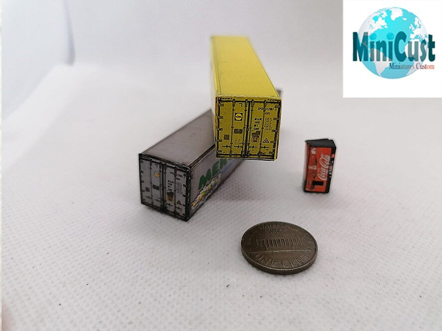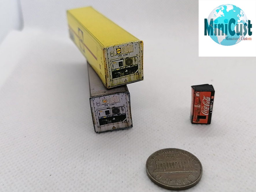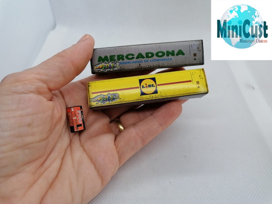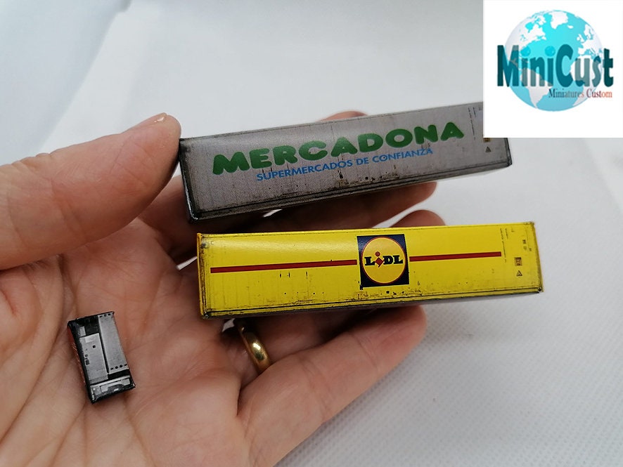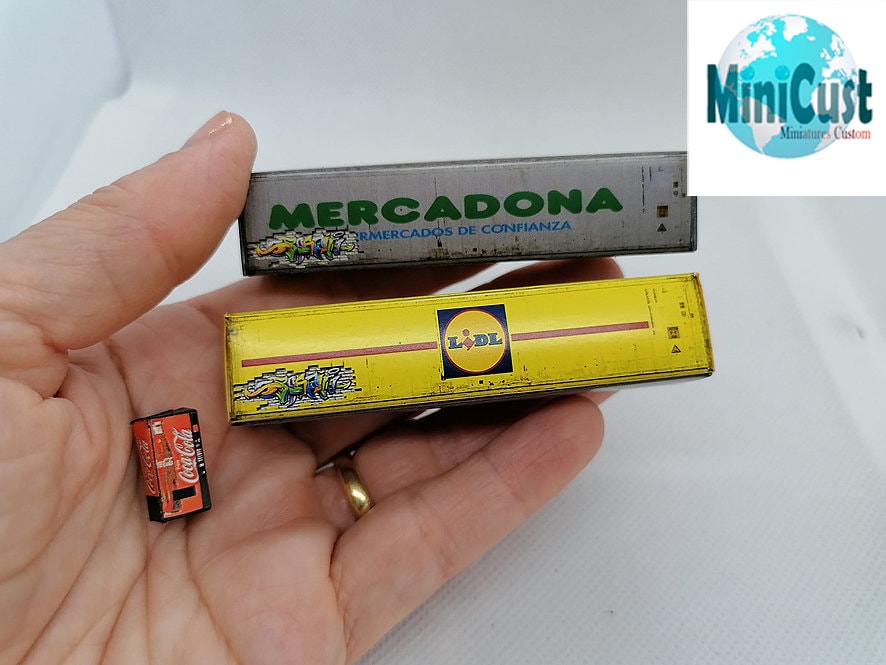 2 Container 40ft LIDL MERCADONA & 1 Vending machine, Artisan Handmade. N gauge railways , dioramas, gifts, cakes.