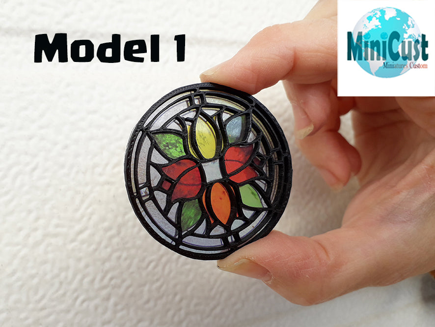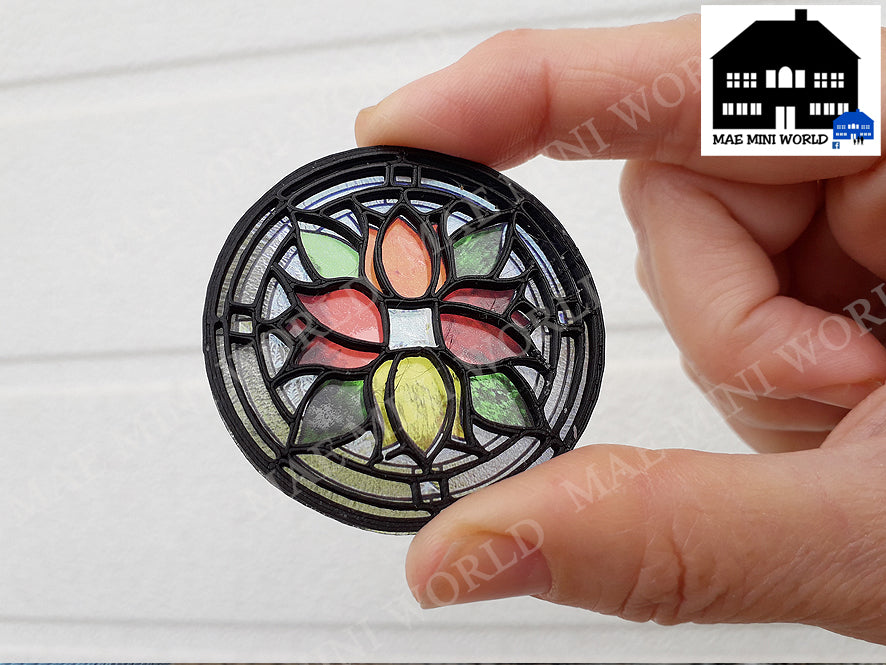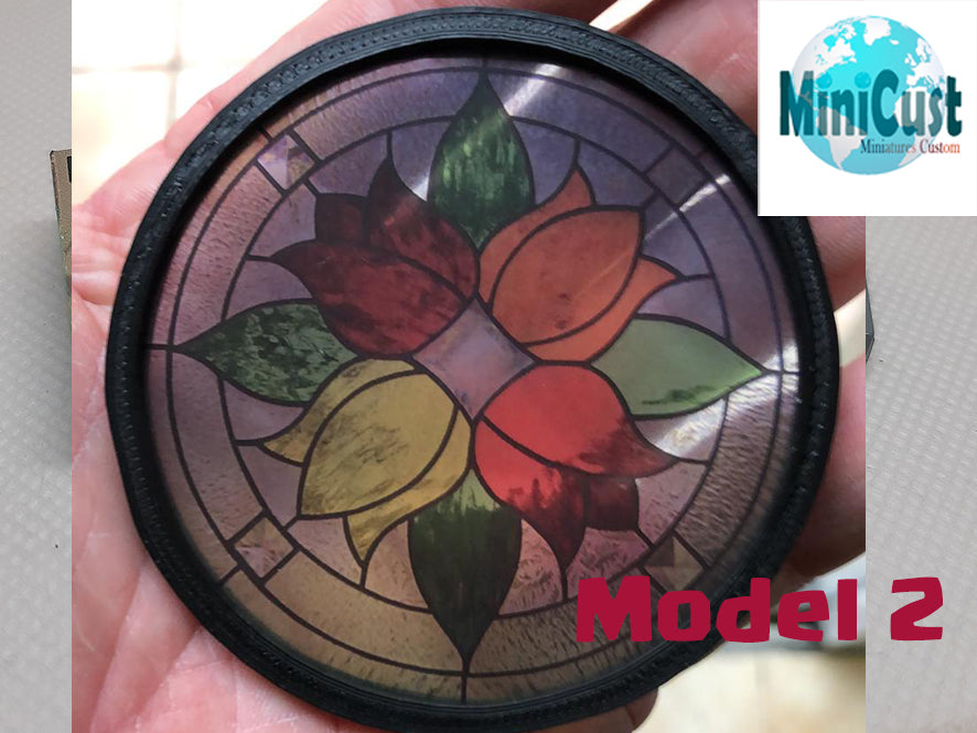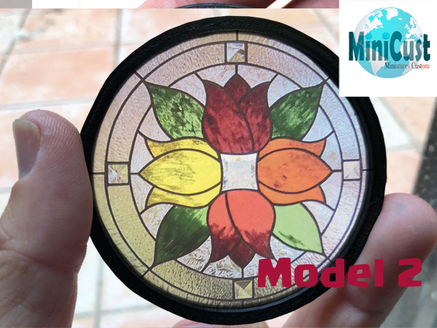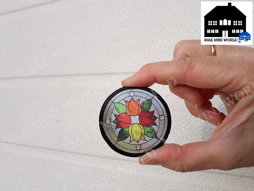 Miniature ROUND Stained Glass window TULIPS. Mini Stained Glass Dollhouse. Custom size. dioramas, Scenes, gifts, cakes, desk decoration.