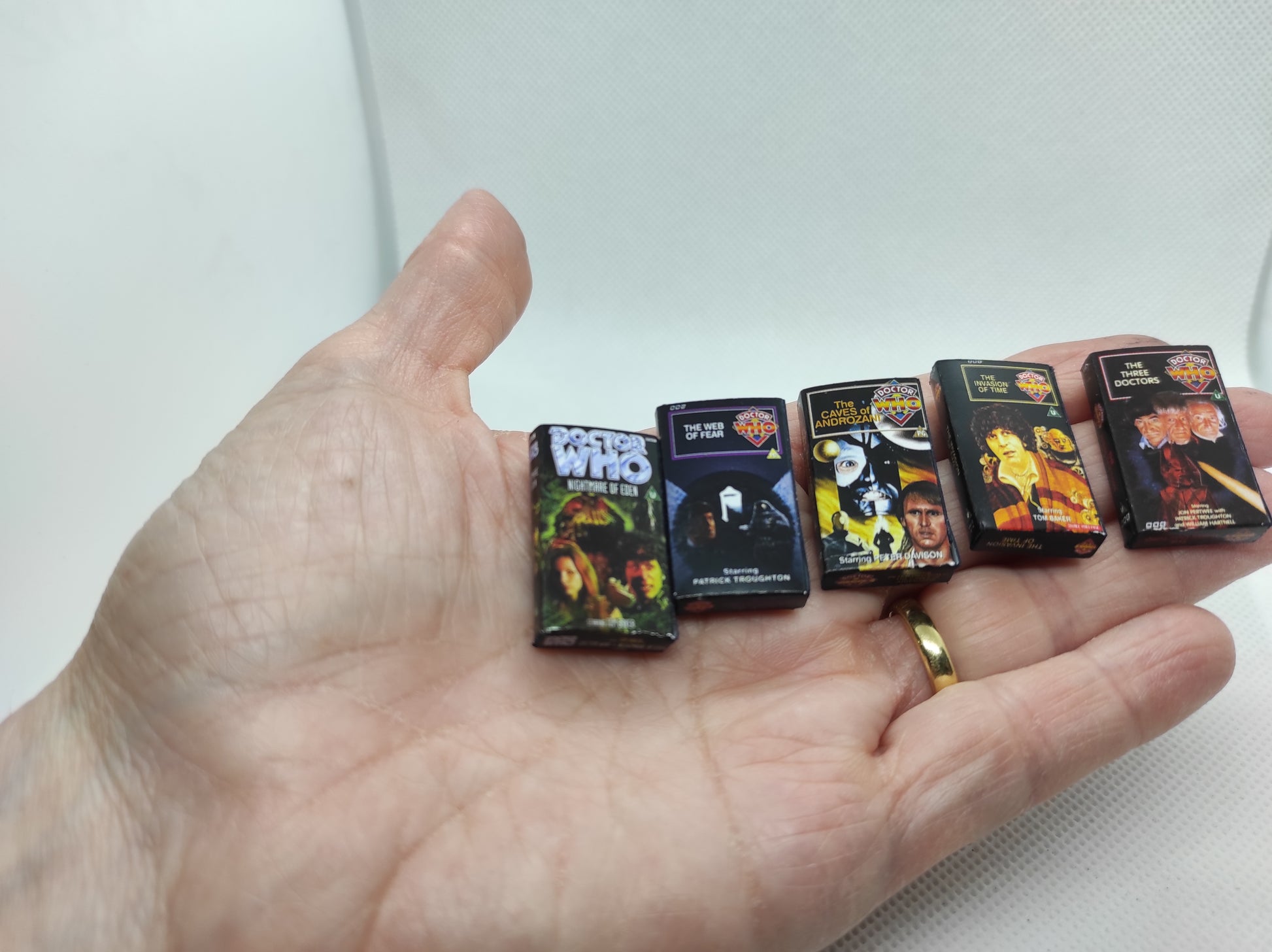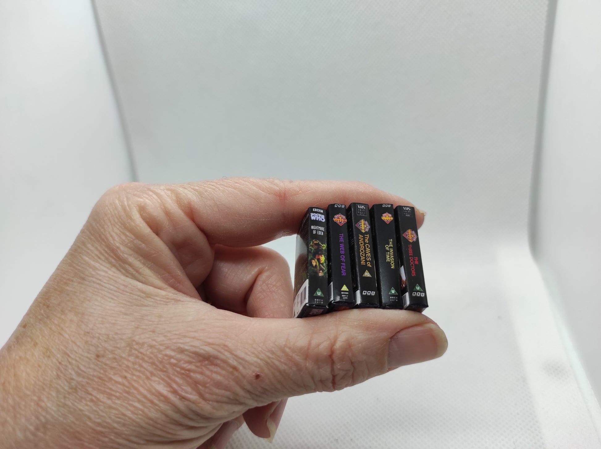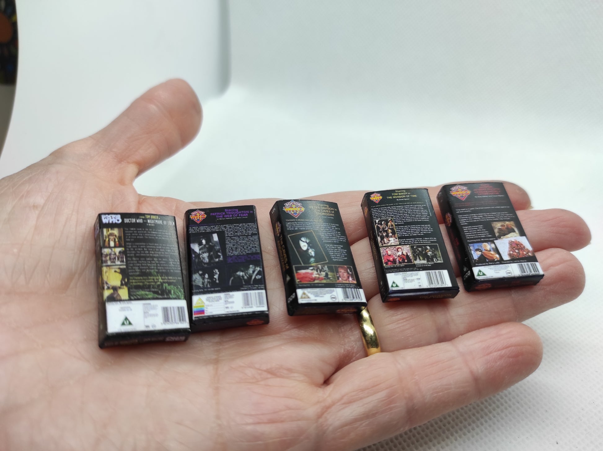 DOCTOR WHO, VHS Miniature Collection. Handmade replica Vintage. Scale 1/6
